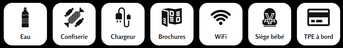 Bouteilles d’eau, chargeurs, confiseries ou encore WIFI sont présents dans chacun des véhicules et vous assurent la qualité de service requise, pour vous. Groupe de professionnels, ou touristes chargés de bagages, nous vous accueillons à bord de notre voiture et vous garantissons une course paisible, sans retard, sans aléas et avec le sourire.